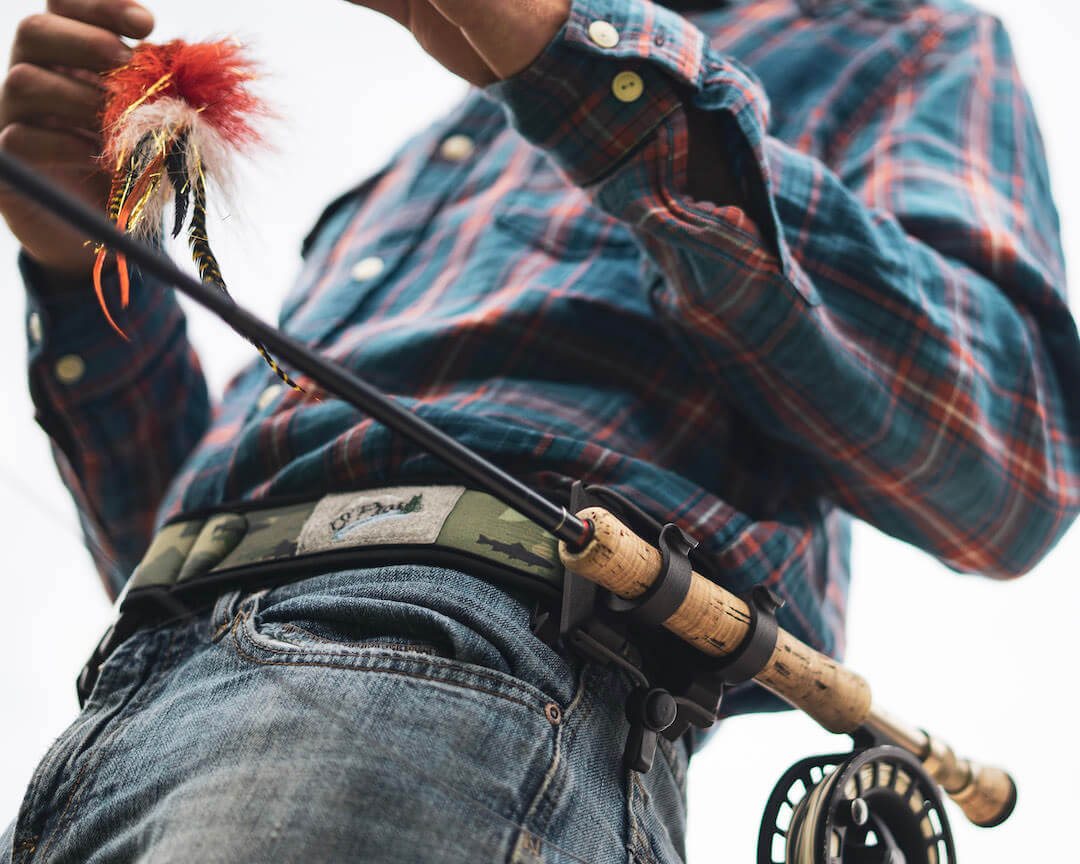 1. The O’Pros 3rd Hand Rod Holder clips to any belt, including your wading belt on your fishing waders. It has belt clips sized to fit up to 2″ belts and another for up to 1″ belts. This also means you can likely find attachment points on your fishing waist pack and possibly on a sling pack or fishing backpack.