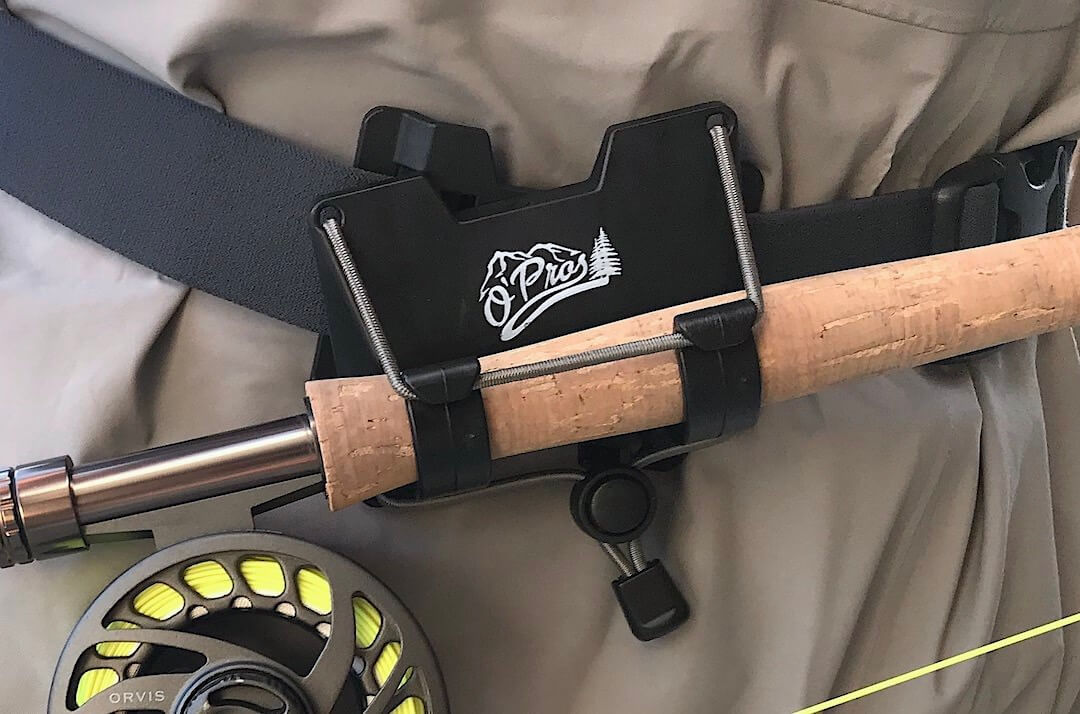 The O’Pros 3rd Hand Rod Holder is an ingenious belt-clip fly fishing rod holder. It has two clips that are perfectly sized to securely hold most any fly fishing rod — and many spinning rods.